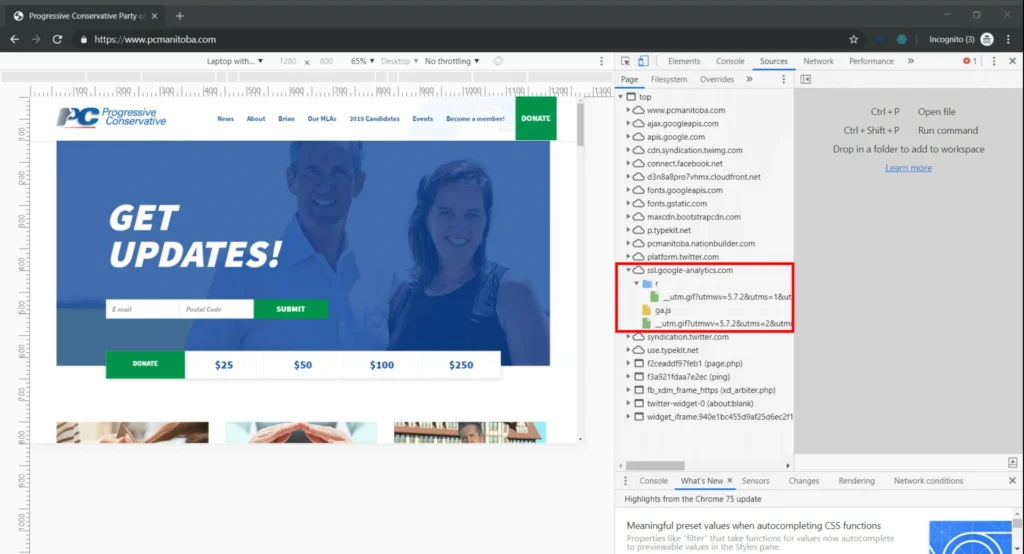One noteworthy example is the Progressive Conservative Party of Manitoba, which (at time of writing) serves as Manitoba’s official Government, and still relies on the ga.js library to measure visitor interactions with their official party website.
